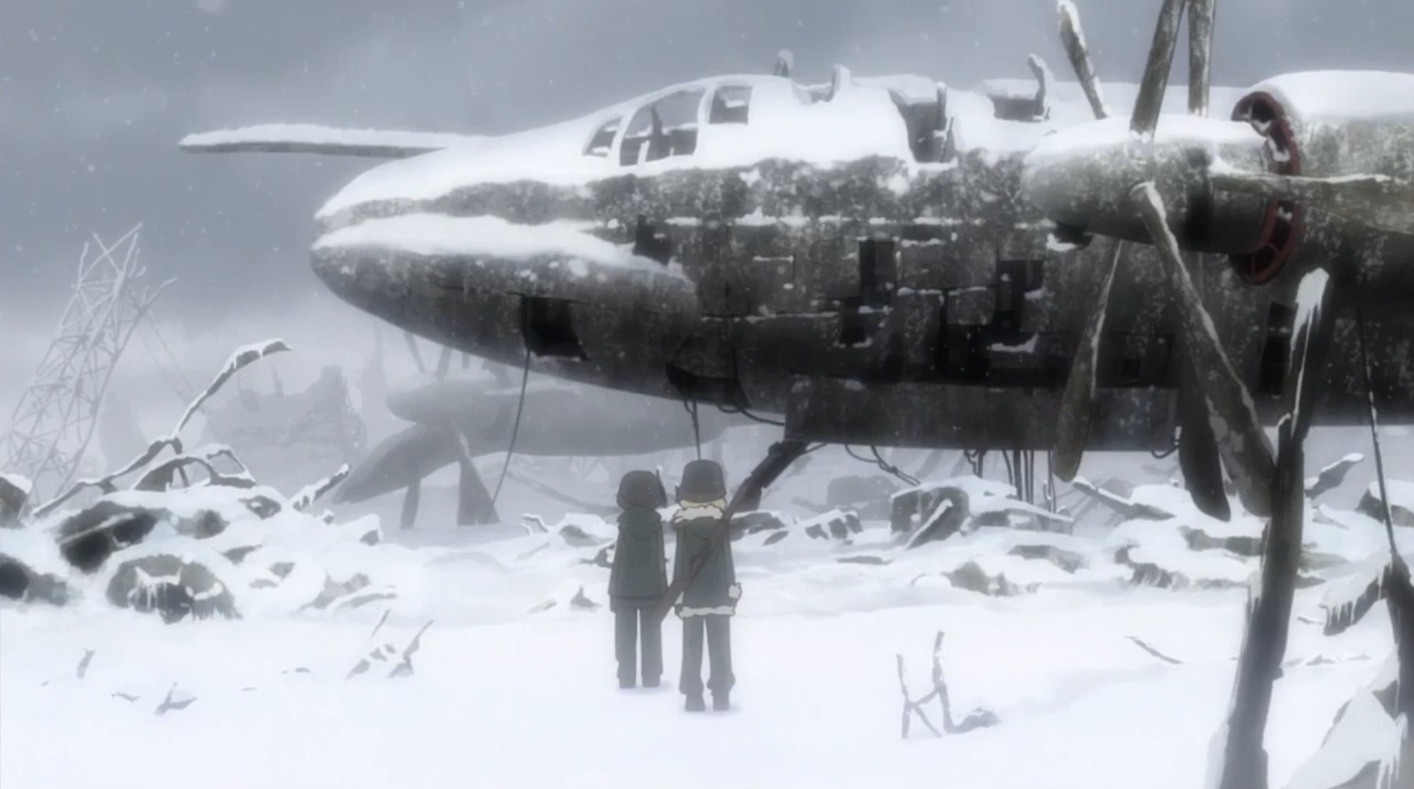 Часто происходит так, что несколько государств развязывают войну и вовсе не беспокоятся насчет того, чем это может закончиться для обычных мирных жителей. А часто исход, к сожалению, один - смерть ни в чем невиноватых людей. Вот и в описываемой картине произошла такая же история. Долгое время два государства не могли разрешить конфликт мирным путем, ведь соперничали за природные ресурсы и территорию. Как часто бывает в такого рода разногласиях - обойтись без открытия огня не получается. Именно так и произошло, началась жестокая и кровавая война, в ходе которой погибло немало людей. В одном из населенных пунктов Японии смогли выжить только две девочки, которых зовут Чито и Юри. Они чудесным образом спаслись, причем кроме них больше никого нет. Девочки успели спрятаться в бункер и пережили всю войну в нем, но отсидка прошла не так гладко, как хотелось бы. Один из обломков залетел в бункер и ударил Чито и Юри. С недавних пор они абсолютно ничего не помнят. Это говорит о том, что ужасные события прошлого им неизвестны. Теперь героини ходят по населенному пункту и не понимают, что с ним произошло. Помимо этого, у девочек нет ни пищи, ни воды. Они стараются найти хоть что-то, чтобы не умереть с голода. Удастся ли выжить в опустошенной местности, где кроме них нет ни единой живой души?... Смотрите аниме онлайн бесплатно в хорошем качестве и на русском языке — без рекламы и ограничений. Погрузитесь в удивительный мир дружбы, любви и захватывающих приключений вместе с героями любимых аниме-сериалов и фильмов. Тысячи тайтлов — от трогательных романтик до эпичных сражений. Удобный плеер, ежедневные обновления, лучшие новинки и классика жанра — всё для настоящих поклонников аниме!